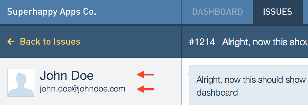 The name and email shows up in the issue's sidebar in the agent dashboard -