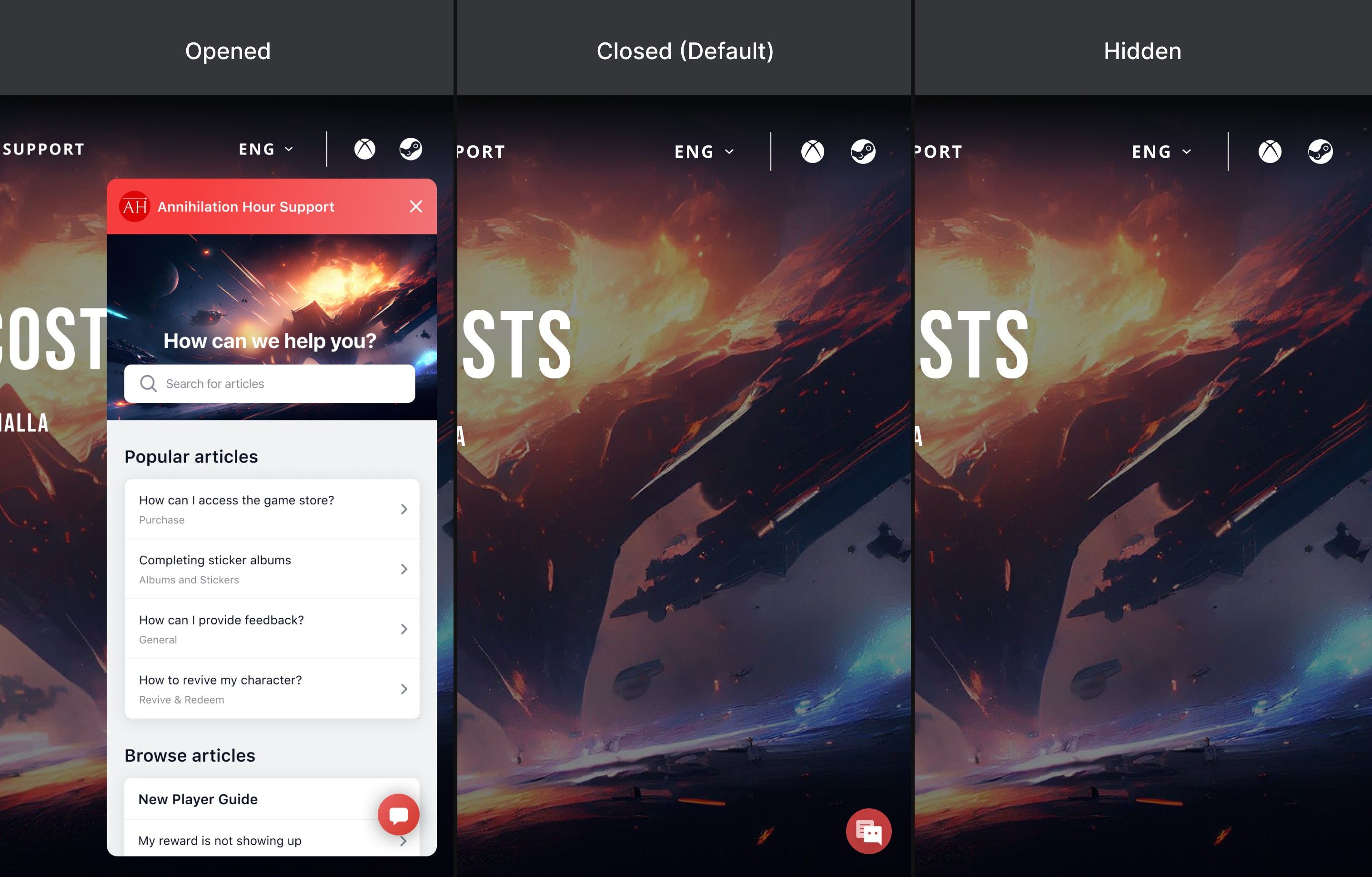 The Helpshift Widget fires the following events across different scenarios. You can use the addEventListener and removeEventListener APIs to manage the events.
