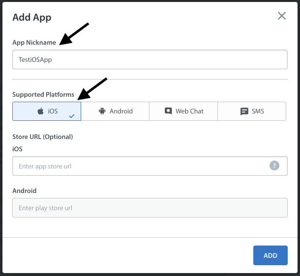 2. Create an app with iOS as a selected Platform